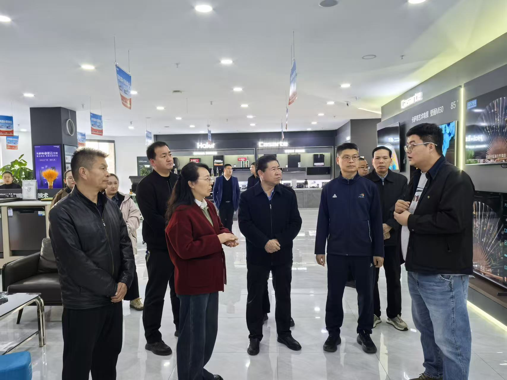 调研组实地走访了张掖市名豪家电有限责任公司、爱琴海商业综合体、张掖老街等点位,深入了解家电产品迭代升级趋势、绿色智能家电销售占比及企业售后服务等;考察商业综合体在亲子体验、休闲娱乐、餐饮消费等业态布局,了解其在主题活动策划、客流提升、特色街区文化植入、夜间经济发展以及文旅消费带动等方面的有效做法。