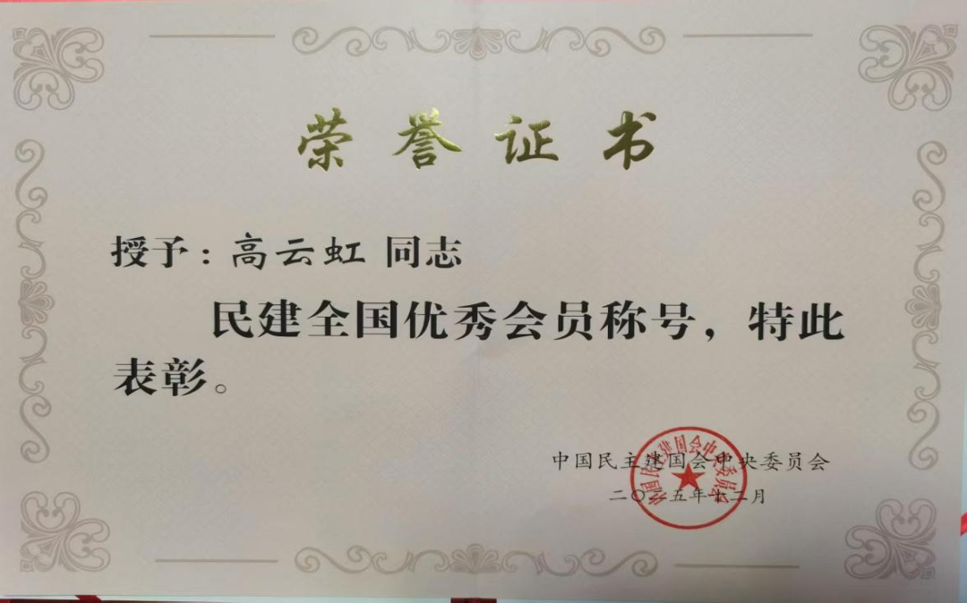 市委会主委高云虹荣获“民建全国优秀会员”称号,委员申亮荣获“民建全国社会服务工作先进个人”称号,骨干会员示范引领作用得到充分体现。