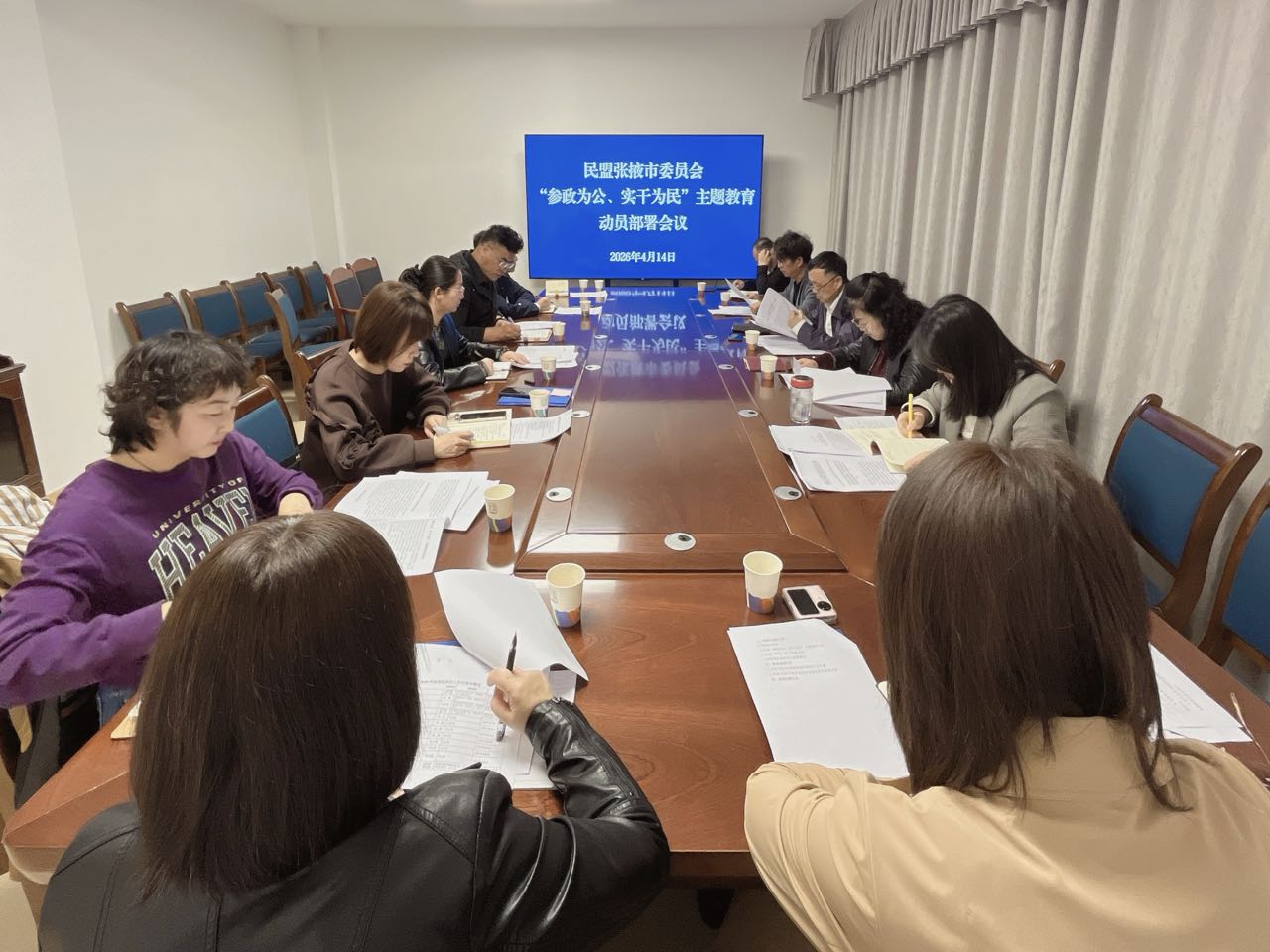 4月14日,民盟张掖市委会主委曹高鹏主持召开主题教育动员部署会。市委会班子成员及市委会委员、各基层组织负责人、内部监督委员会委员、青年委员会委员参加会议。