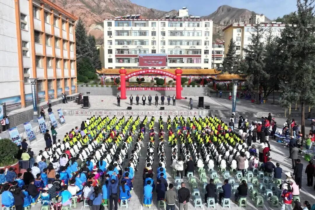 9月15日,张掖市第28届全国推广普通话宣传周启动仪式在肃南县举行,肃南县各中小学师生、各部门单位工作人员及群众代表共300余人参加。