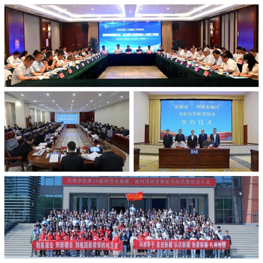 区域联动促交融,携手共创的生动局面加快形成。持续推进人才援疆行动,主动服务国家战略,持续支持河西学院开展人才援疆工作,已连续17年累计派出34批13912名师范生赴新疆顶岗实习支教,支持14114名毕业生赴疆就业创业,其中,今年选派1176名学生赴疆顶岗实习支教,支持685名毕业生赴疆就业创业。“到基层去,到边疆去,到祖国最需要的地方去”已成为河西学子普遍价值追求。2024年9月,河西学院招生就业处被党中央、国务院授予“全国民族团结进步模范集体”荣誉称号。拓展人才援疆成果,市委、市政府主动沟通衔接,与新疆阿克苏、阿勒泰地区缔结友好城市,鼓励各县区及市委统战部、培黎职业学院、山丹培黎学校、甘肃高台干部学院等部门单位与新疆有关地区和单位建立合作关系,市委、市政府建立支持河西学院高质量发展事项清单,成立工作专班,在铸牢中华民族共同体意识、人才交流、商贸往来、文旅融合等更宽领域、更深层次开展交流合作。推进跨区域交流互鉴,同内蒙古阿右旗、青海海北州及临夏州开展睦邻友好走访,签订民族团结进步联创共建和少数民族流动人口服务管理协议,开展文化走亲、交流演出等20多项系列活动,以协同联动深化各民族交往交流交融。