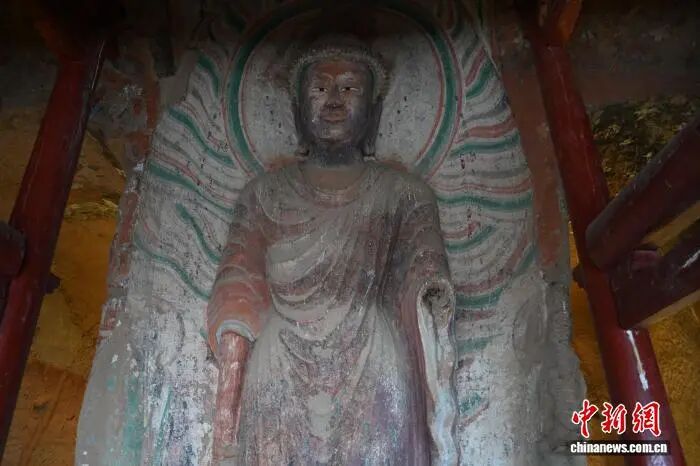 图为马蹄寺石窟群窟龛里的彩塑。戴文昌 摄